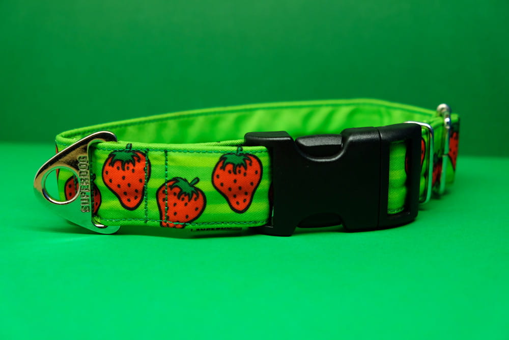 Obroża dla psa na klamrę , truskawki, 3cm, 30-40